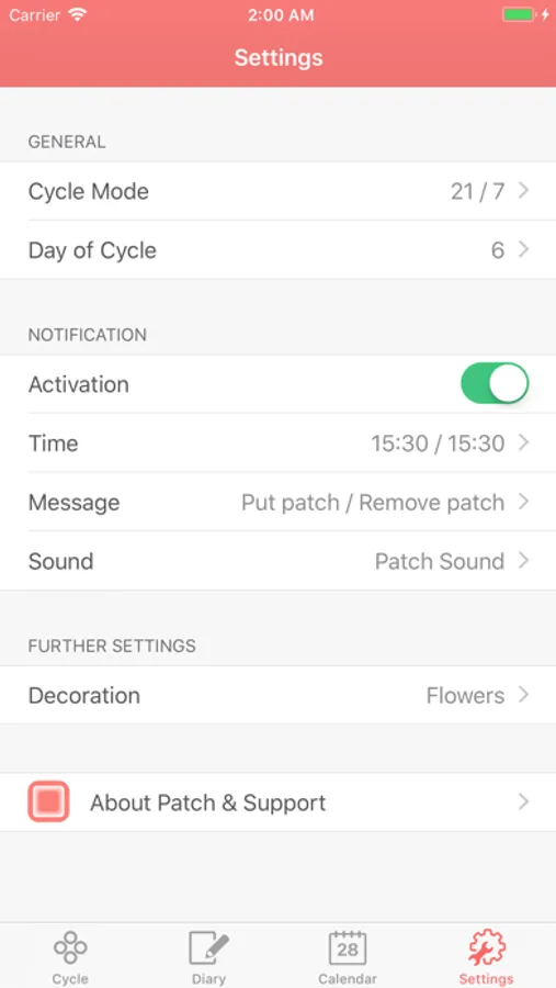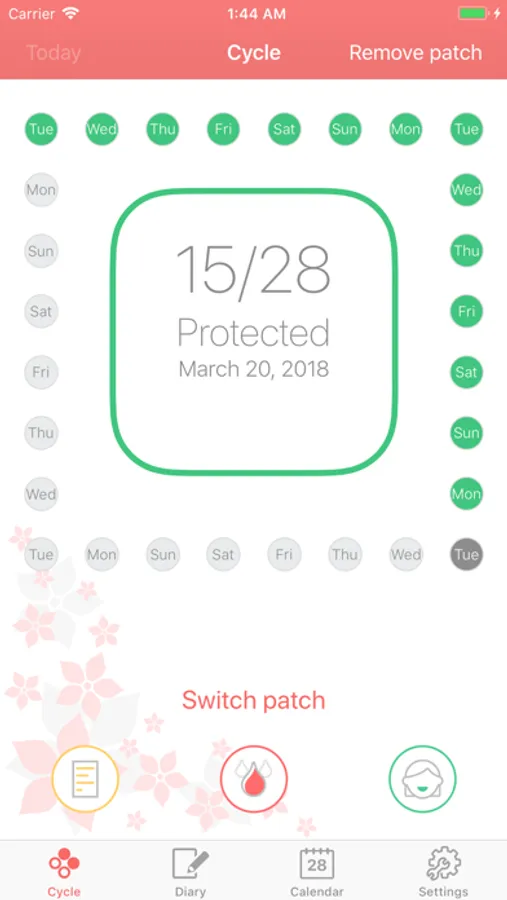 Patch helps you to manage the contraceptive patch in your menstrual cycle. You are getting reliably reminded and always having an overview of your whole cycle. Thanks to the intelligent navigation you can easily switch through the days of cycle and enter notes, your personal wellbeing and the menstrual flow.