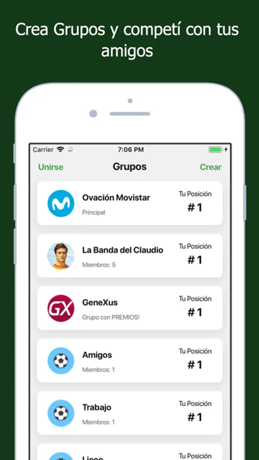 Creá tus grupos para competir con amigos y compartir los resultados en redes sociales.
