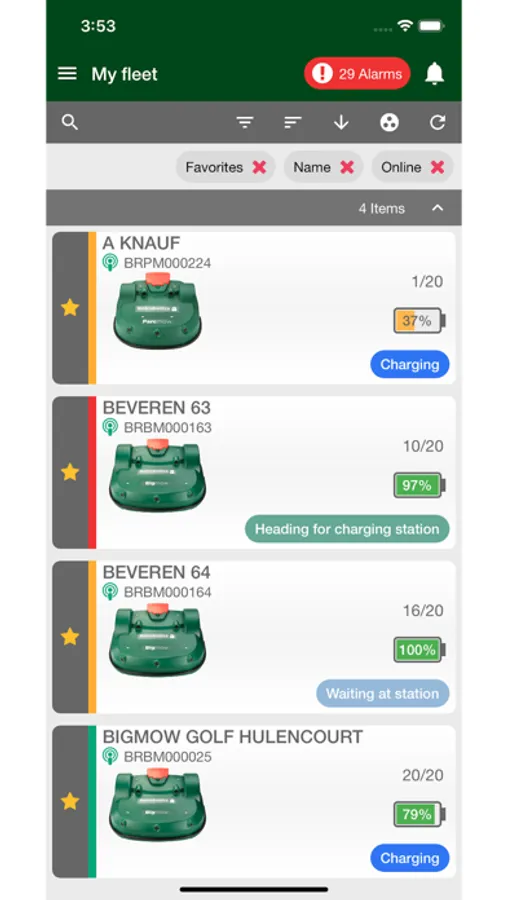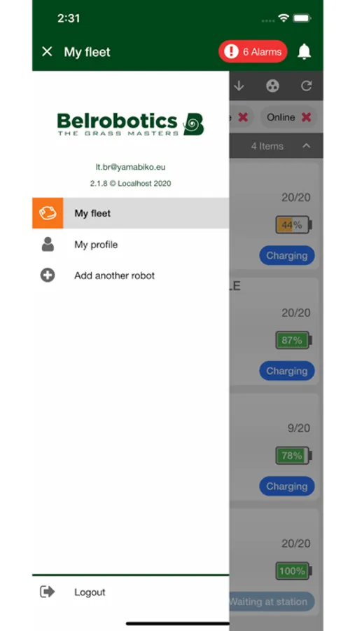 The Belrobotics app gives you control to your robot, wherever you are. Check live status, battery level and performance of the last five days. Get easy overview of activities, parameters and schedule. Send any commands and get instant confirmation. Check robot GPS Location with associated alarms position. Search, sort, filter and group to compare robots.