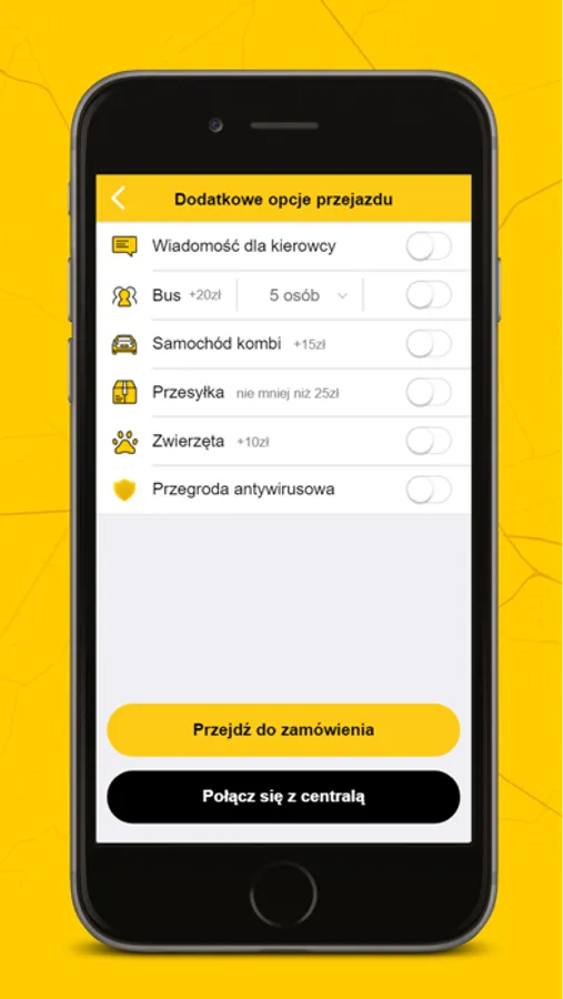 Taxi Kombi, Taxi Bus oraz zwierzęta w kontenerze. Jeżeli dodatkowo zależy Ci, aby kierowca komunikował się w języku obcym, Aplikacja Taxi Polska umożliwi zaznaczenie odpowiedniej taksówki.
