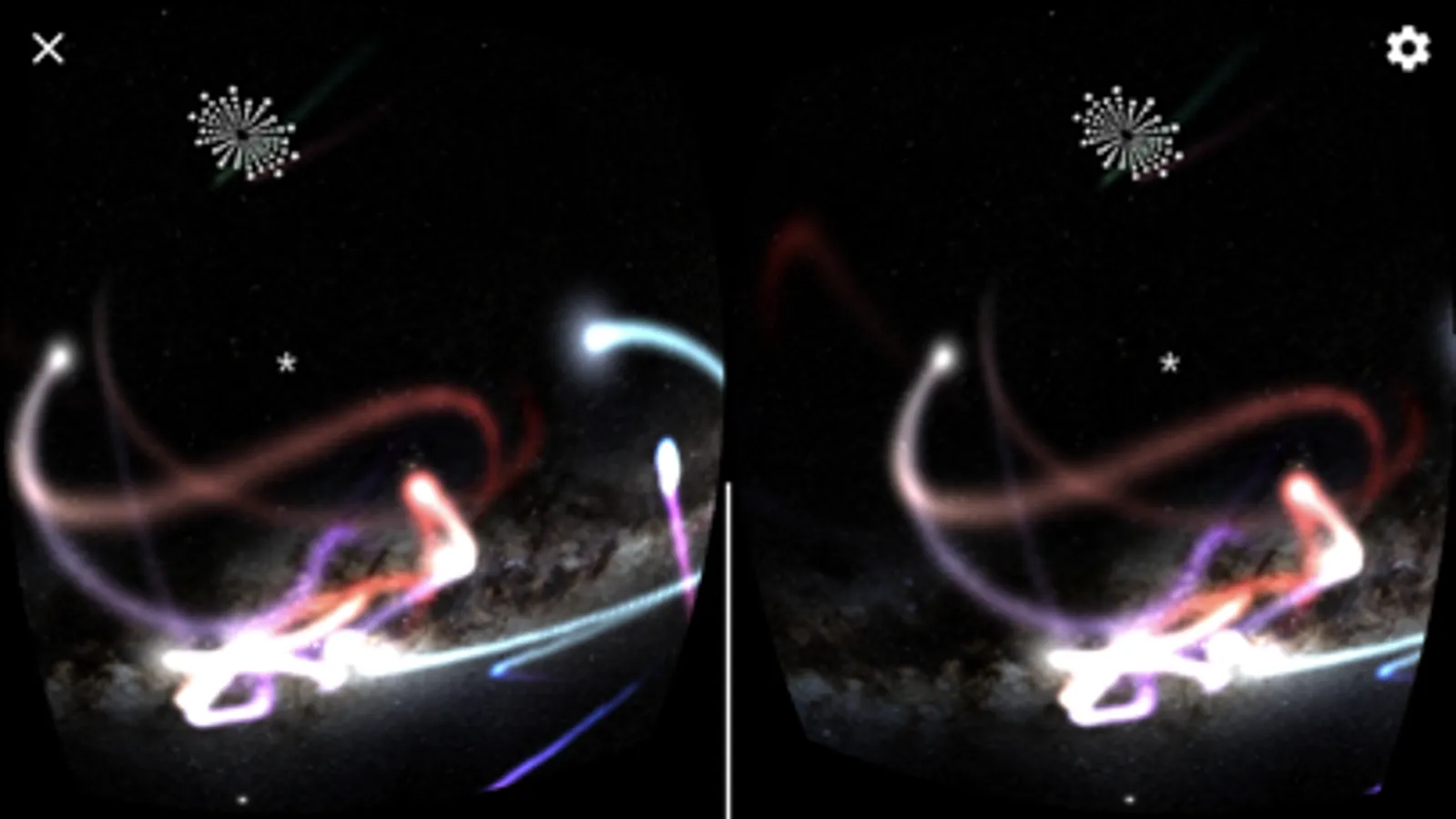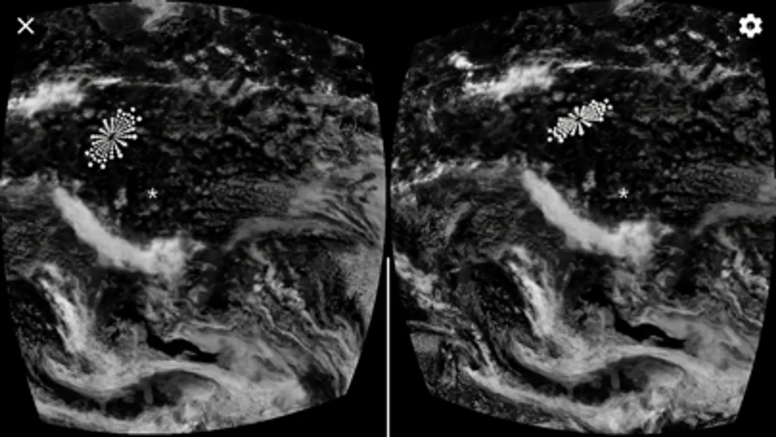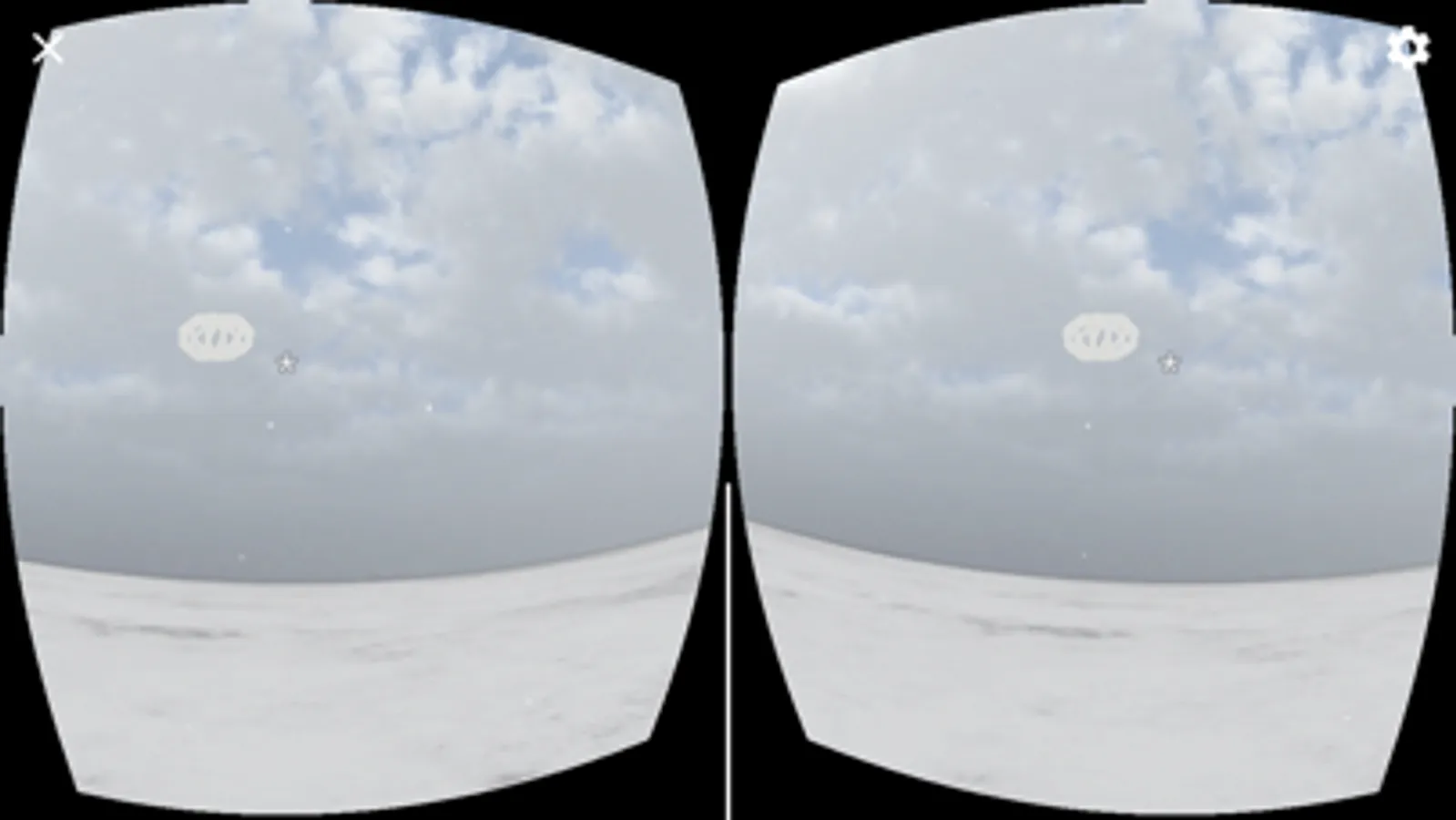 3.在場景中轉動頭部向四面八方觀看,尋找轉動物件的連接口按鈕,利用用畫面中心的小白點對準連接口的轉動物件,將發出不同音頻的提示音,發出提示音即表示對準成功,此時按下Google Cardboard的電容按鈕,即可跳轉到下一場景進行觀看。
