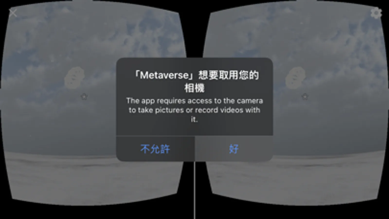 1.在iPhone開啟Metaverse應用程式後,橫放置入Google Cardboard二代眼鏡裝置或其他相容VR頭戴顯示器中,即可開始在360度的虛擬實境中觀看。