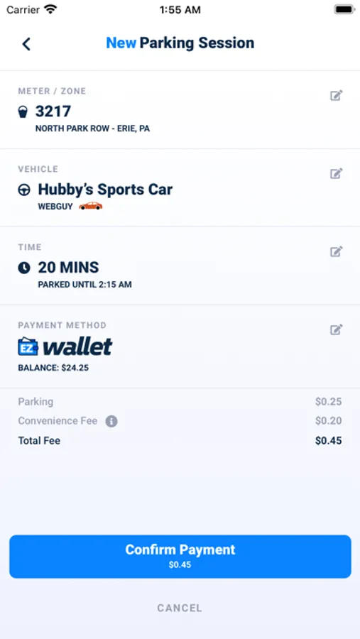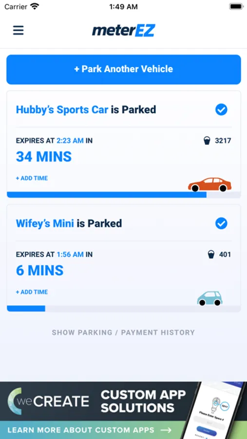 Available in Erie & Meadville, PA (moving to more cities in the future!), meterEZ is a mobile parking payment app, dedicated to a great user experience and ease of use. No more carrying quarters around to pay for parking -- Simply enter your payment information and your parking meter number, choose your vehicle and you're ready to go! Optionally add funds to your "EZwallet" and use it as your payment method and save money on your parking!