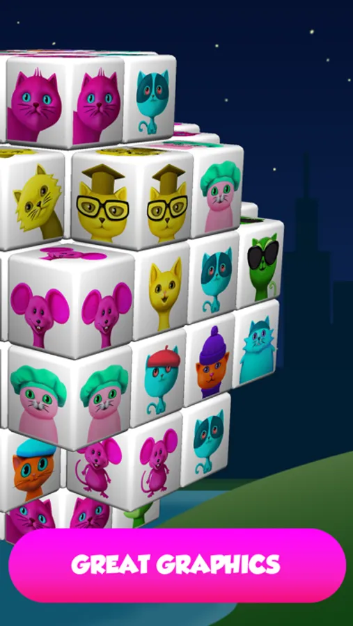 City Cat Mahjong combines mahjongg and match three game-plays with accurate touch controls in a 3D environment.