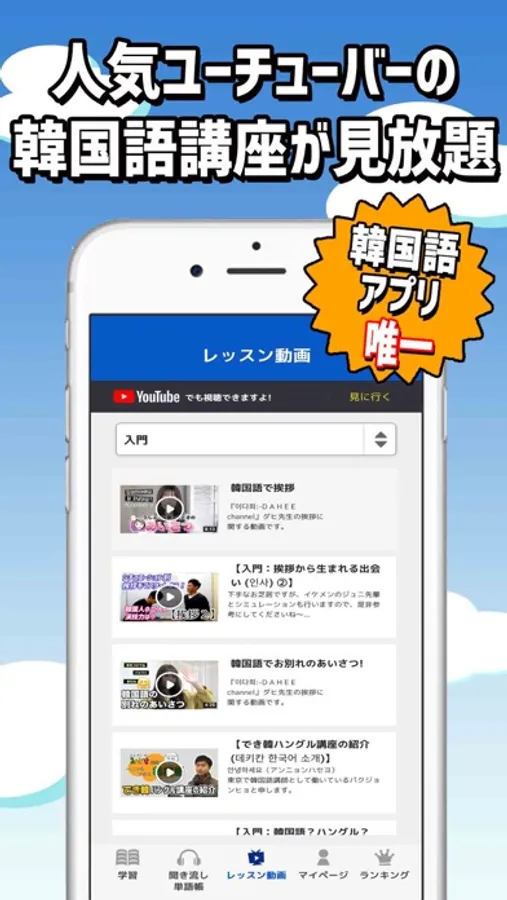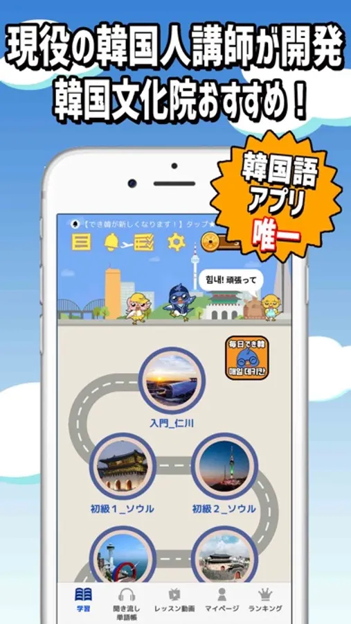 でき韓は「唯一」の韓国語学習・勉強アプリです。