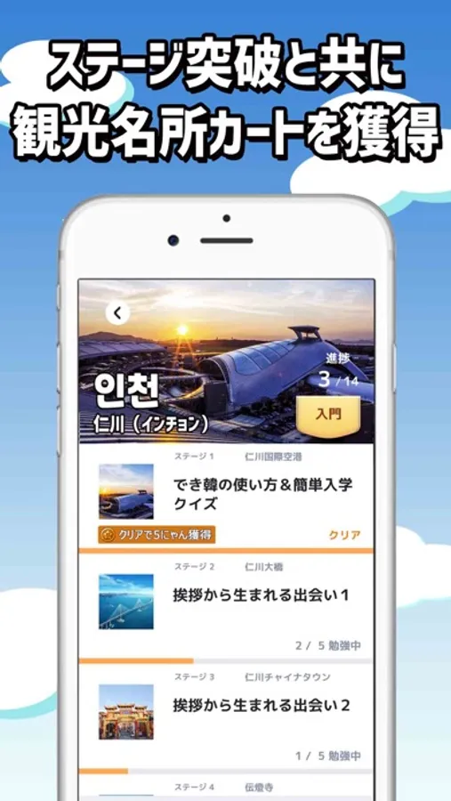 ◉各ステージをクリアし、観光名所カードを獲得していきましょう!