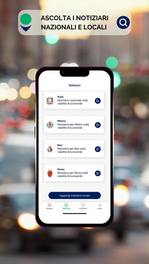 Ascolta i notiziari di traffico per la tua città e regione; rimani sempre aggiornato anche su eventi di viabilità a livello nazionale grazie al notiziario d’Italia.