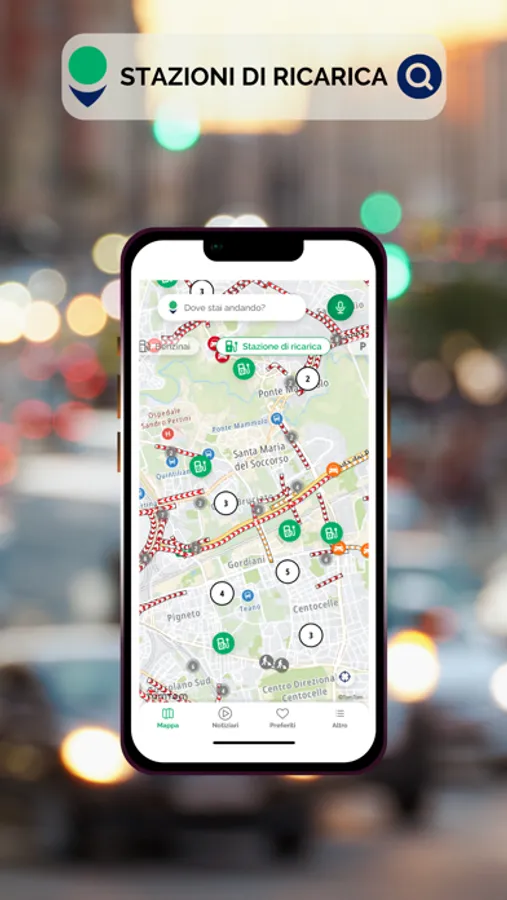 Con il filtro Stazioni di ricarica sarà possibile trovare le stazioni di ricarica lungo il tuo percorso.