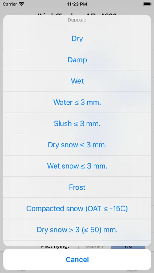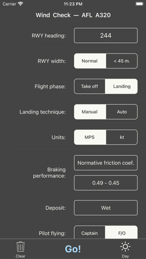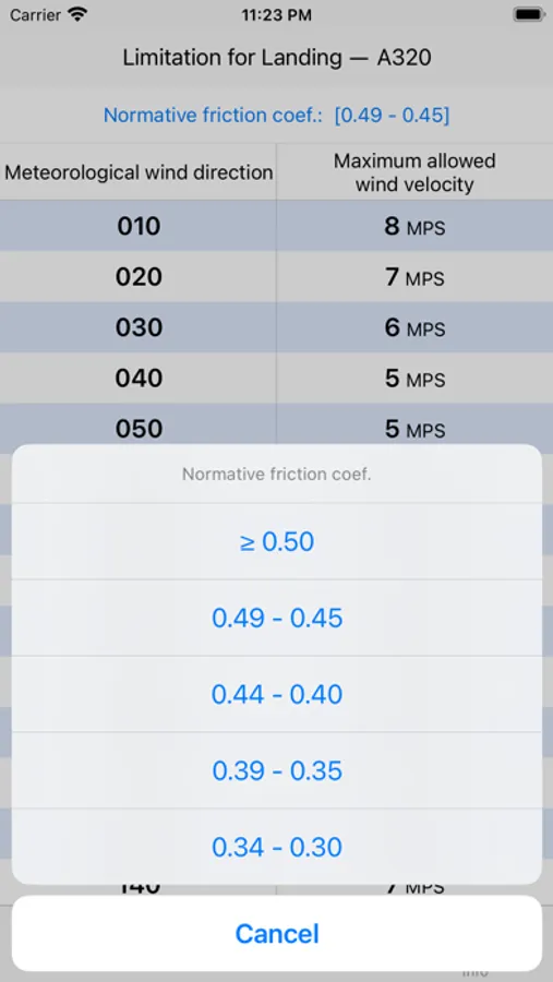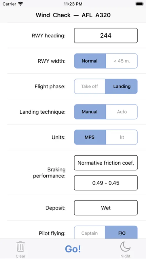 It is suggested that all the basic parameters of a particular take off/landing are inserted beforehand to get the resulting wind maximum velocity handy and compare it with the wind given by ATC rapidly and timely for a GO/No-GO decision.