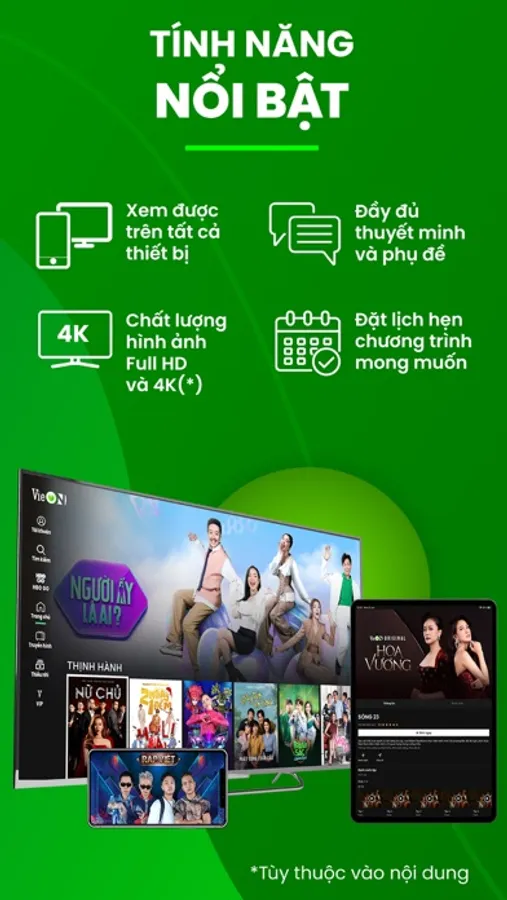 * Exclusive and original contents: Family series Giac Mo Cua Me, Wang's Family Vietnamese Remake, Hai Duong Trong Gio action mini-series, etc.