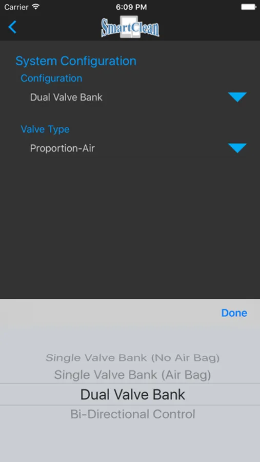 The Smart Clean 2 app Interfaces with pneumatic valves that control an air system to extend or retract groups of pneumatic cylinders which change the depth of row cleaners used in planting systems.