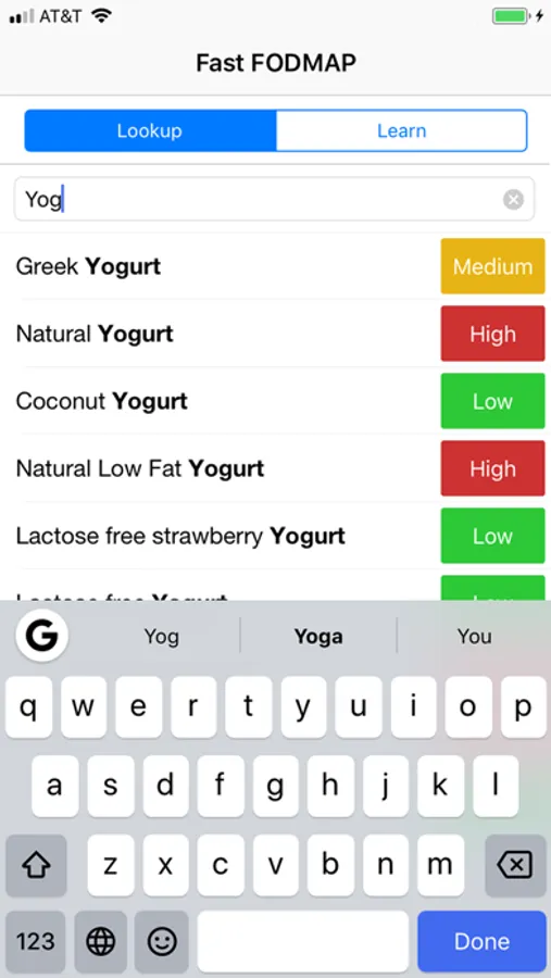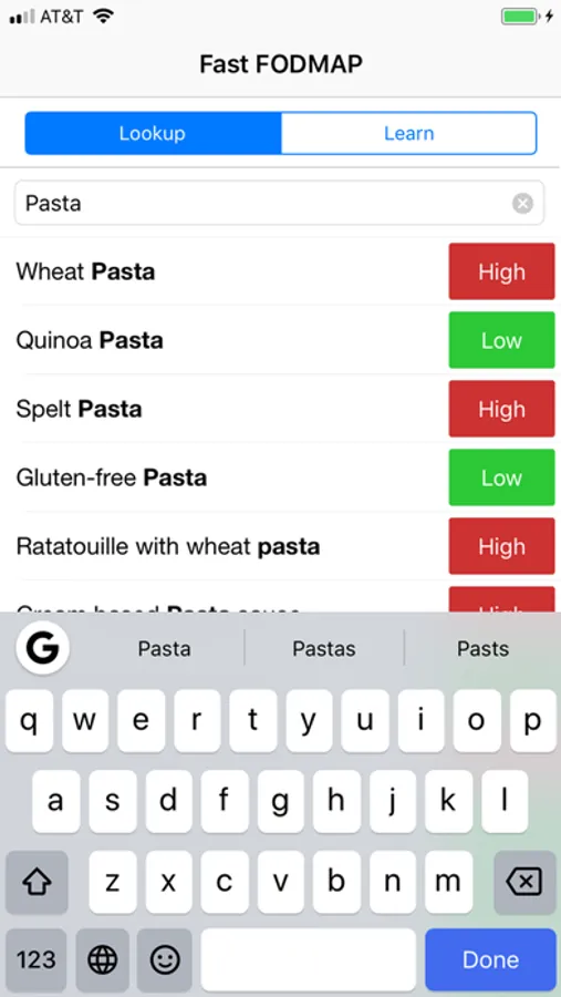 The fastest way to look up which foods are High, Low or Medium FODMAP foods. 8x faster than the Monash University app*.