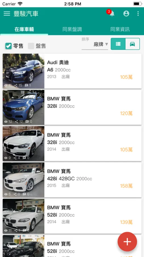 經常往來的友好同業,只要簡單一按,立即同步顯示同業全部在庫車輛,不需要再打電話詢問,掌握彼此車輛互通盤售調做。
