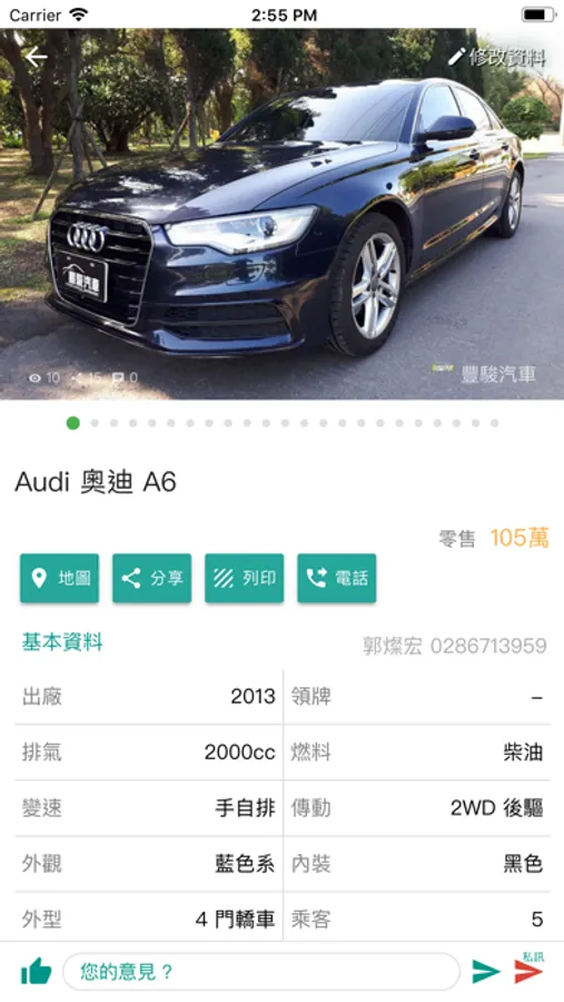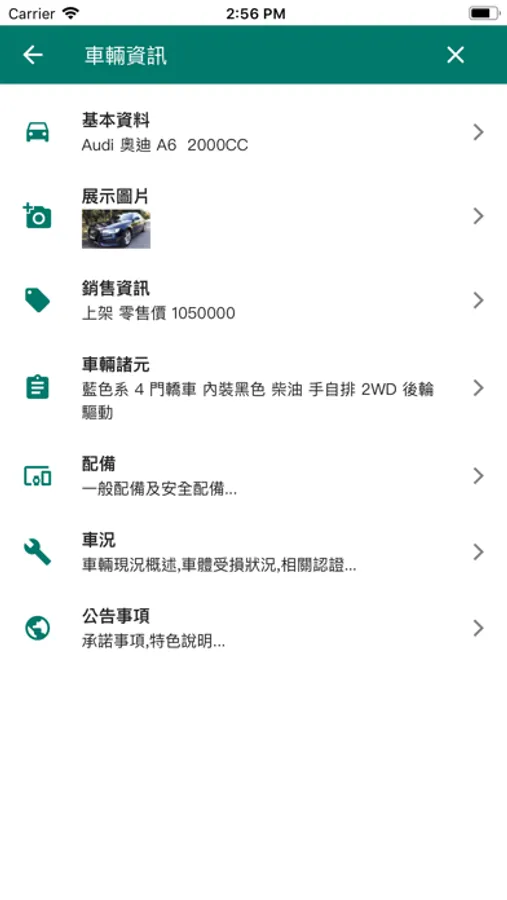在庫車輛買賣訊息同步到手機,讓售車人員只要透過手機得知在庫車輛售訂狀況,與每部車的標價、底價等資訊就像是售車報價表一樣。