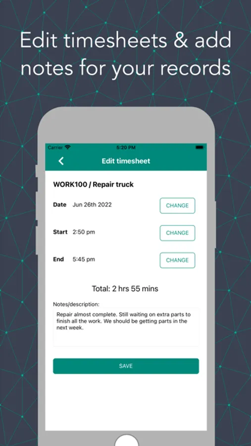 This app is great for small to medium teams that do work by travelling in cars, purchasing or even staying in the office. ChronoSheets aims to provide a great service for businesses like yours.