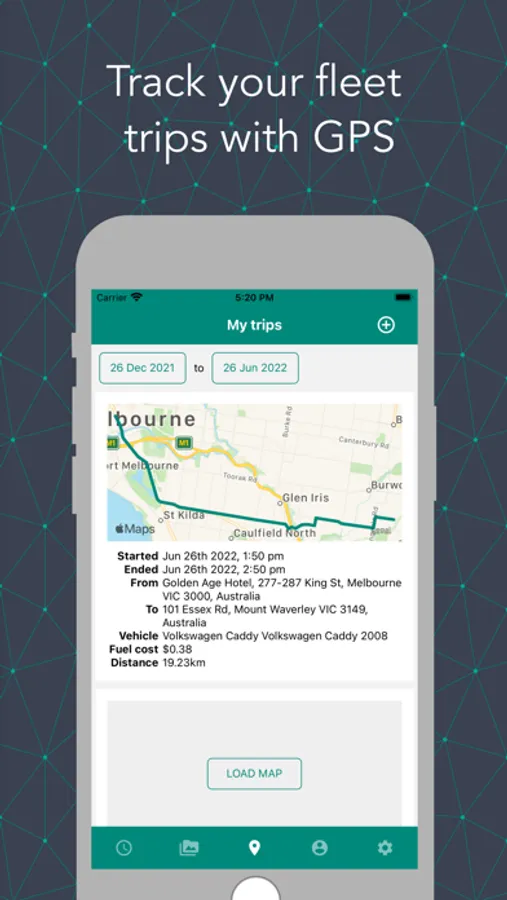 - Virtual log book. Have your employees track their vehicle trips with the app. Use the website to generate full reports on activities.