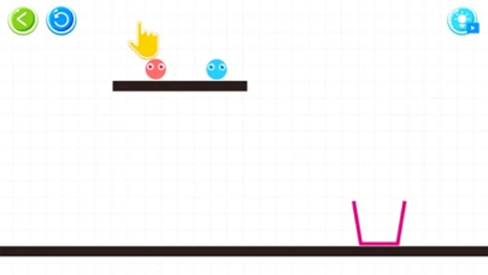 Your goal is to use this physics line or polygon to bump the balls to the same color cups.