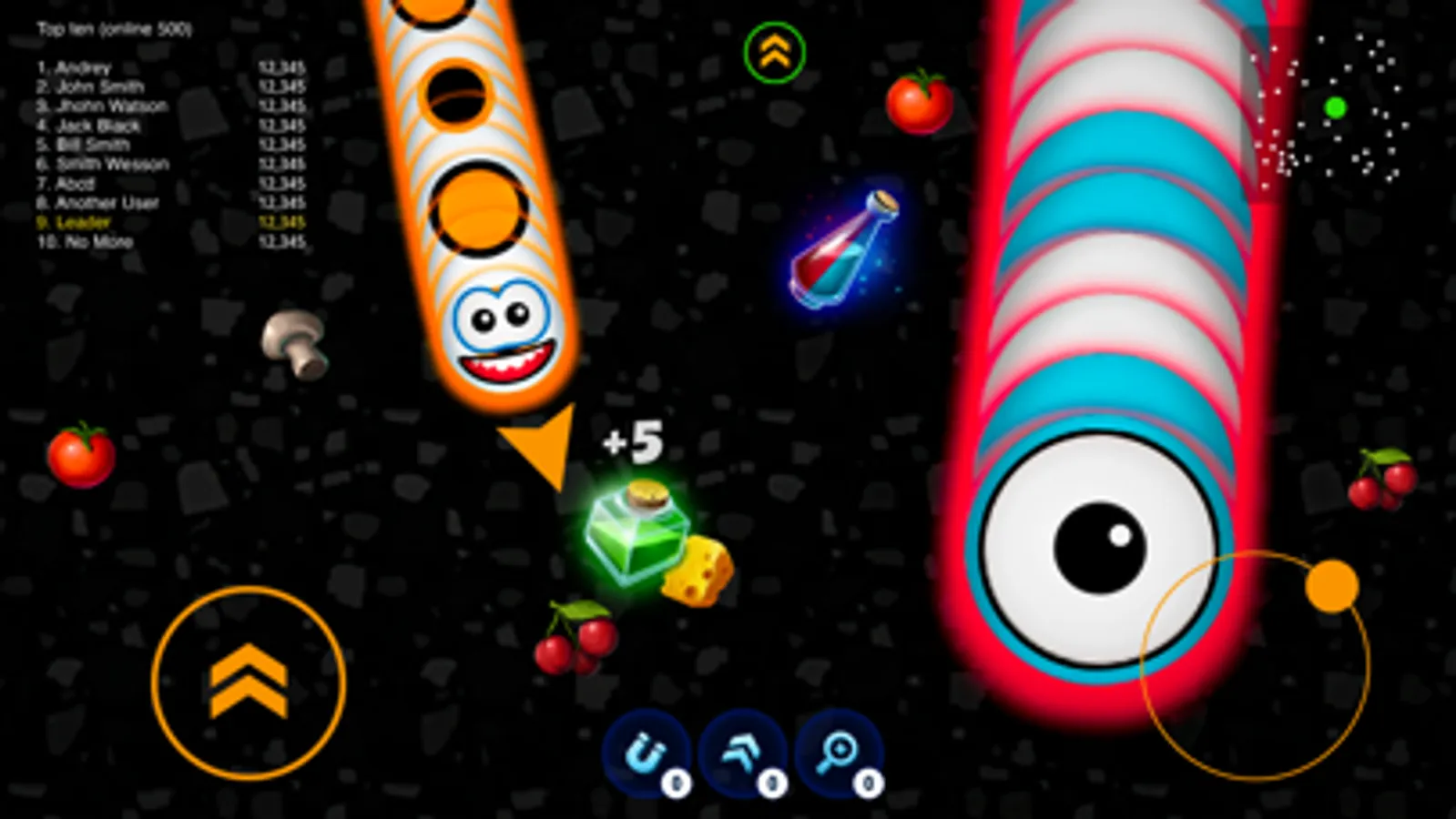 Grow your worm to be the largest and earn yourself a champion’s title. And don’t forget, a champion must stand out from the crowd. Choose a skin for your worm in the wardrobe or create your own cool design.