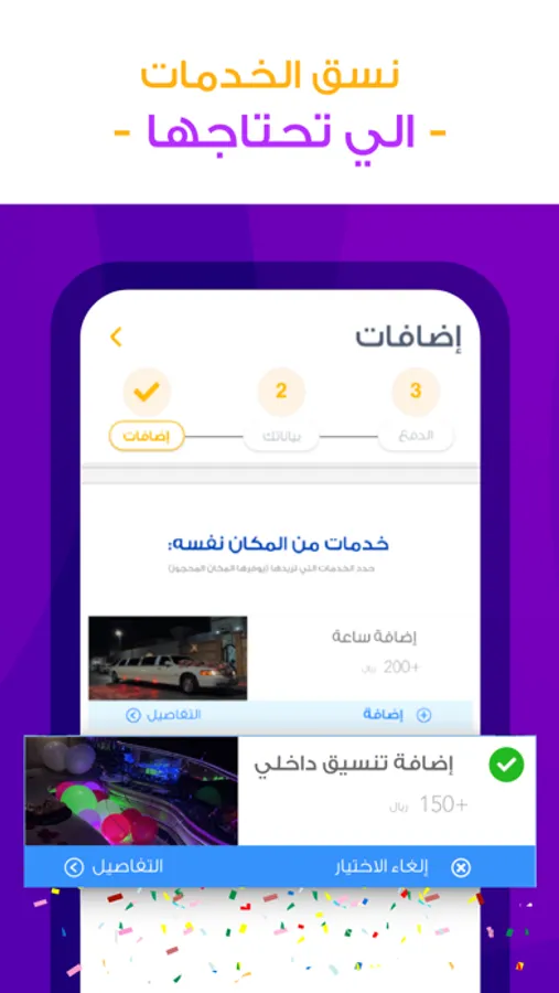 - إمكانية حجز المكان عن طريق الأقساط الشهرية! (قاعات مختارة فقط + يتطلب التحقق من اهلية العميل)