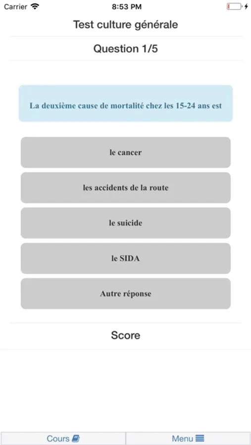 (biologie, culture sanitaire et sociale, mathématiques et bien sûr la redoutable épreuve de tests d'aptitudes du concours d'auxiliaire de puériculture) Cette application est dotée d'intelligence artificielle. Cette application génère les questions-type qui reviennent chaque année au concours dans toutes les catégories: BIOLOGIE HUMAINE, MATHEMATIQUES et les tests psychotechniques: test de LOGIQUE, test NUMÉRIQUE, test VERBAL, tests d'ORGANISATION et test d'ATTENTION et d'OBSERVATION.