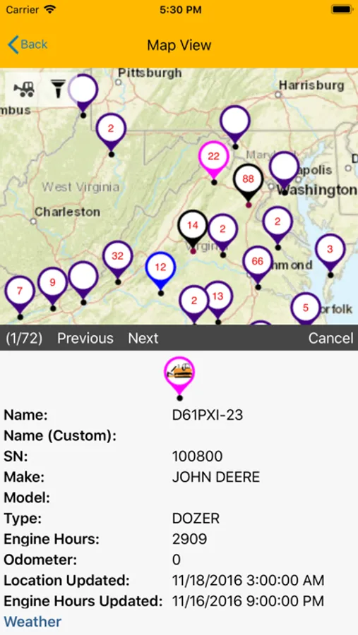 • Manage costs with machine utilization details organized by job, fuel usage, and hours