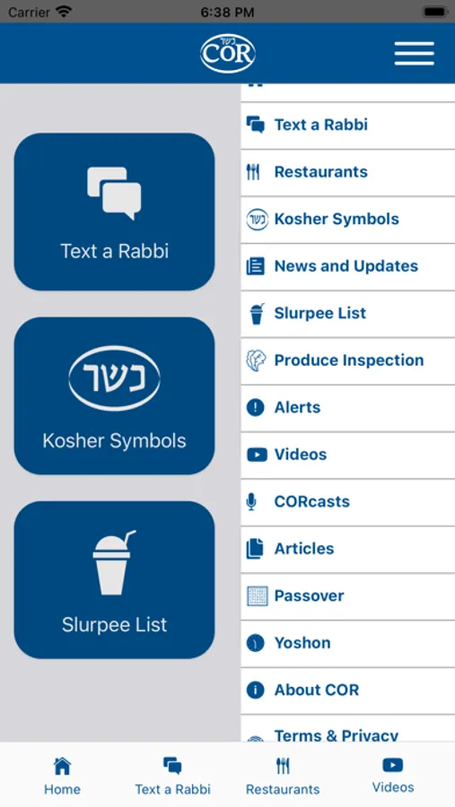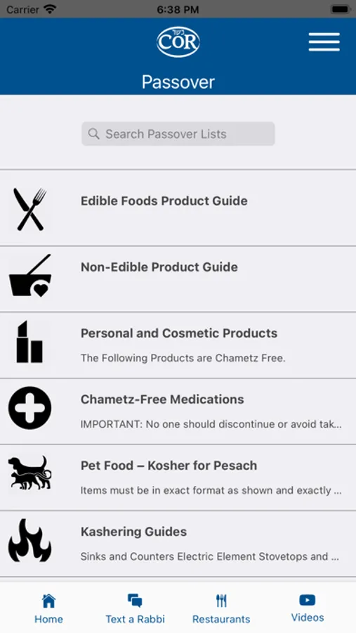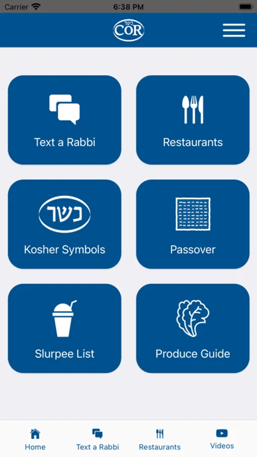 The COR - Kashruth Council of Canada official application. This application allows you to keep up to date with all information Kosher. You can now quickly reference the most common questions in regards to all things Kosher.