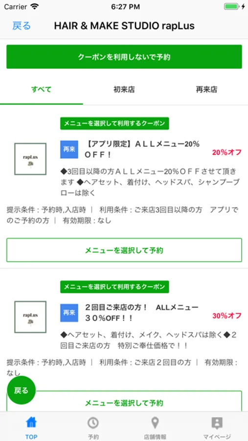 お得なクーポンが配信されます。ネット予約時にクーポン利用での予約も可能なので来店時もスムーズに施術頂けます。