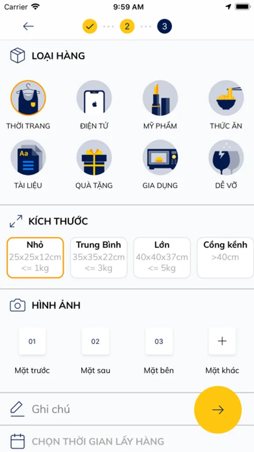 Just 2 simple steps, you can place a delivery order for any type of goods, anytime and anywhere.