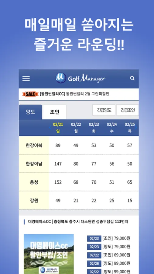 편리하고 즐거운 골프라운딩 골프매니저가 제공 하겠습니다.