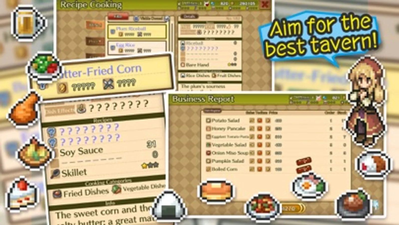 Run the adventure tavern how you like! Collect ingredients and cook new dishes above 600! You get level ups not by defeating monsters, but by eating food. Train your characters, conquer new dungeons, and aim to get new ingredients through exploration, farming, fishing, and many more ways!