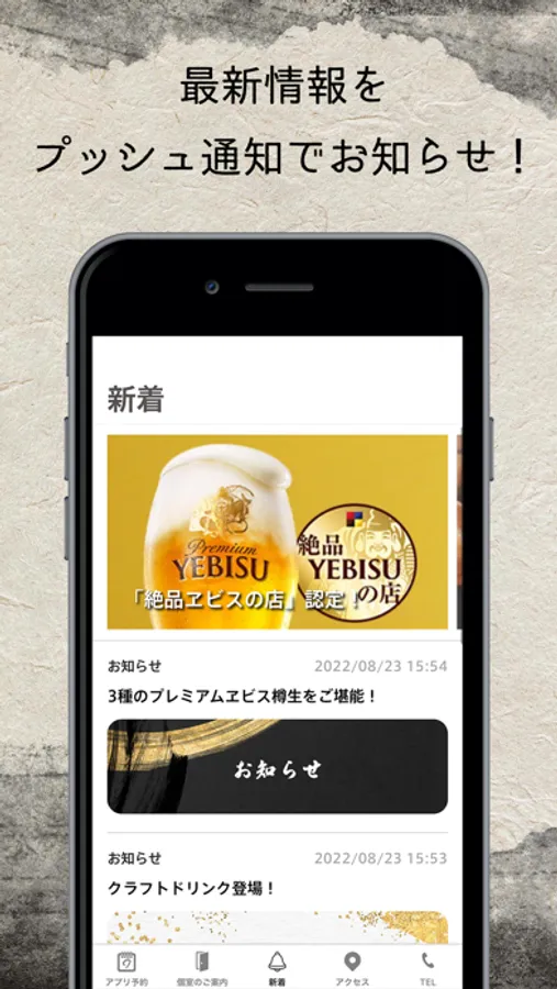 お得な情報をプッシュ通知でお知らせします。アプリの初回起動時にプッシュ通知を「ON」に設定するようにお願いします。なお、ON・OFFの設定は後からでも変更できます。