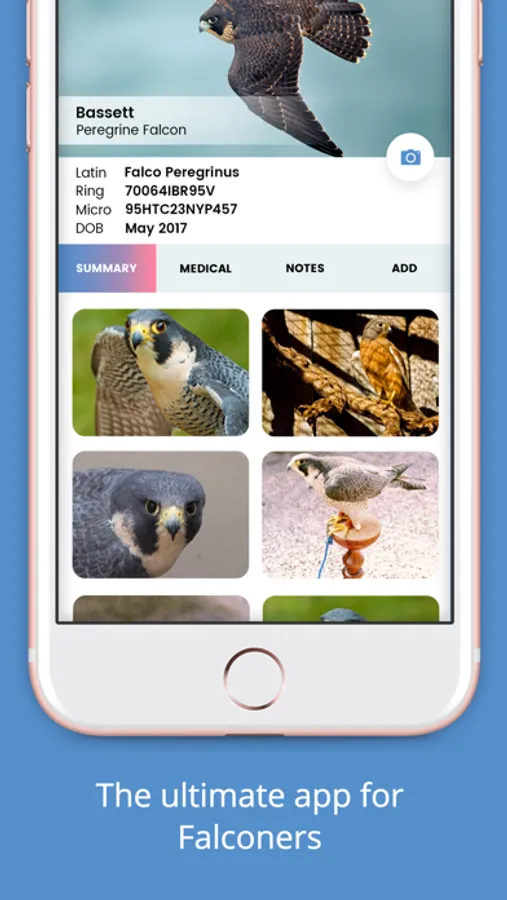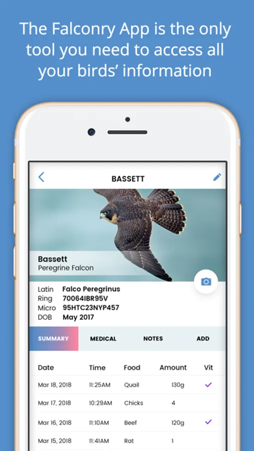 The Falconry App brings comprehensive hawk data to your fingertips with the tap of a screen. Specifically designed for simple operation, The Falconry App enables you to record and recall data instantly on all your birds of prey.