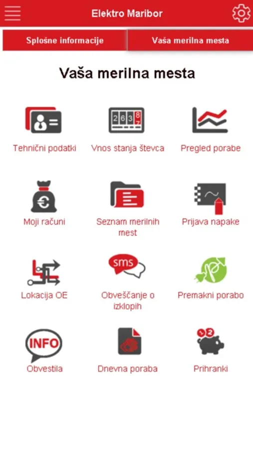 - pregled števčnih stanj in porabe električne energije na vašem merilnem mestu;