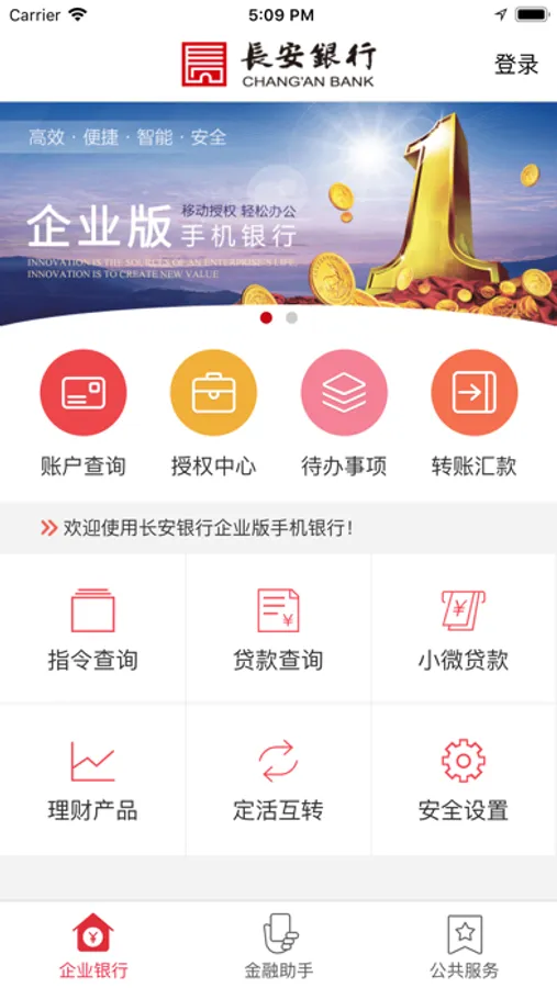 长安银行企业版手机银行是基于长安银行网上银行的相关功能,遵循企业网银相关业务规则、业务流程、审批机制而开发的新一代手机银行产品。该产品围绕“高效、便捷、智能、安全”四大核心目标,操作简单,界面美观,为企业客户提供账户统一管理、移动审批、增值资讯、智能提醒等丰富功能,让客户享受移动金融新体验。
