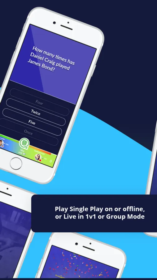 Quizefy is the only mobile trivia game with an offline mode. This means you can play anywhere, even without a data connection: in the subway, in airplane mode, in outer space if you can get a ride! Start your 1st month free trial of offline play today.