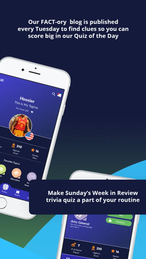 Challenge friend to a live game. Find an opponent across the globe to see how you compete internationally. Pick your topic, activate your challenge and test your knowledge. Or challenge your own high score in single player mode.