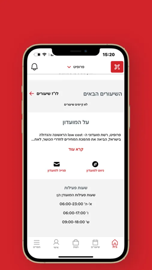 פרופיט – רשת חדרי הכושר לואו קוסט הגדולה בישראל, מביאה את המהפכה גם בשירות ומאפשרת לכם לבצע את כל הפעולות שאתם צריכים כדי ליהנות ממנוי הכושר שלכם: הרשמה לשעורי הסטודיו, הצגת השעורים ע"פ מדריך מועדף, תזכורת לאימונים, ניווט למועדון, הצגת מבצעים מיוחדים, תזכורות לאימונים ביומן, ברור מצב המנוי, בקשה להקפאת מנוי, פניה כתובה ישירה למועדון, הצגת פרטי המדריכים, הצגת מבצעים מיוחדים, הודעות מהמועדון ועדכון שינויים במערכת, עדכון אירועים שונים ועוד ועוד...