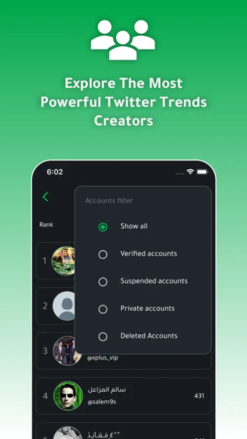3- Display a list of the accounts with the most active and trending hashtags (Saudi - Egyptian - UAE - Omani - Kuwaiti - Bahraini - Qatari - Palestinian - Turkish)