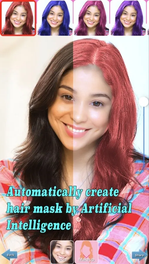 You just need to capture a selfie photo, Artificial Intelligence automatically creates a mask for your hair. The outline of your hair is tricky but don’t stress, App can tidy up the mask within one second. Then just tap to try new colours. It’s super easy to share on social after too to get your friends’ opinions.