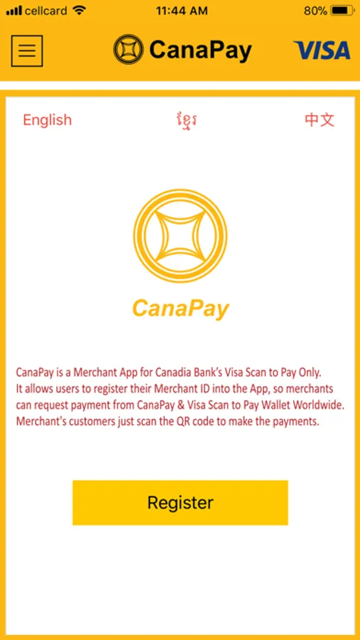CanaPay is a Merchant App for Canadia Bank’s Visa Scan to Pay Only.