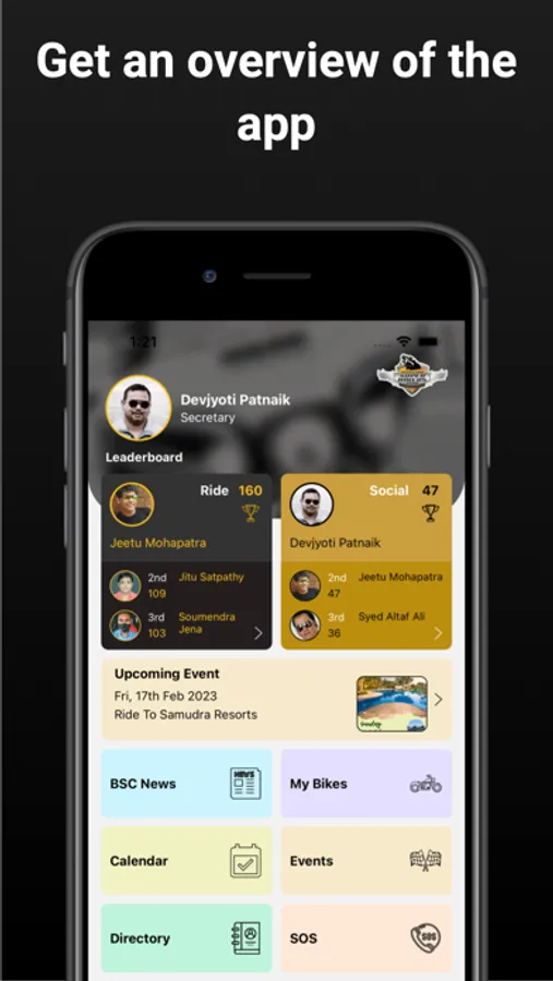 Bhubaneswar Super Bikers Club (BSC) is a biking club in Bhubaneswar comprising of the members who own a super bike and are a member of the BSC community. The BSC App provides access to members to view upcoming biking events, view complete calendar of events, add and view their bikes, access information of others members and much more.