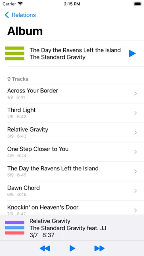 Music Tracks #9 (or Tracks #9) is an iOS application which allow you to search your music library in the device for tracks related to the one playing now. It also provides a widget to show the track information playing now.