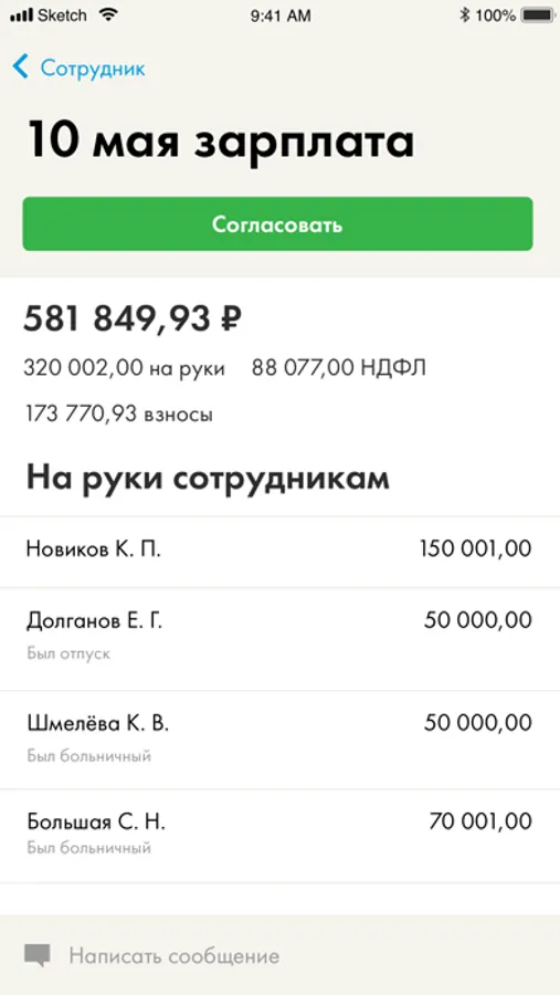 Приложение Сотрудники помогает держать под контролем ситуацию по сотрудникам и зарплатам: