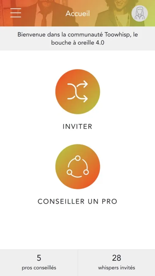 Toowhisp est une application de mise en relation entre des professionnels de plusieurs secteurs d'activité, et des clients en recherche de prestataires.