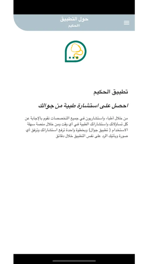 تطبيق الحكيم، يقدم اجابة لاستشاراتك الطبية من خلال مجموعة متميزة من الأطباء من عدة تخصصات.