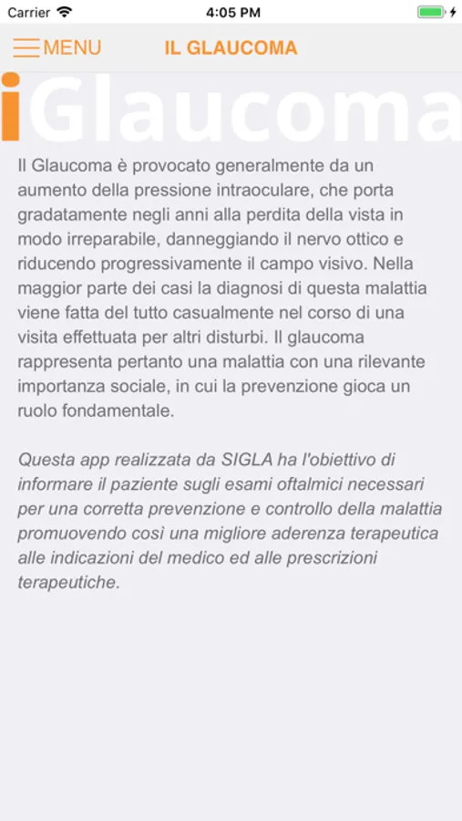 La App iGLAUCOMA, disponibile per tutti i mobile device, e dedicata al monitoraggio ed al controllo dei sintomi legati al Glaucoma.