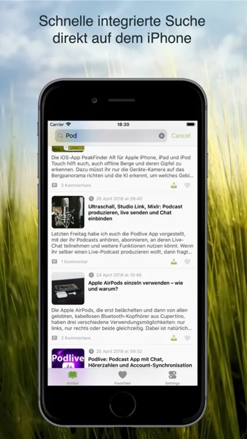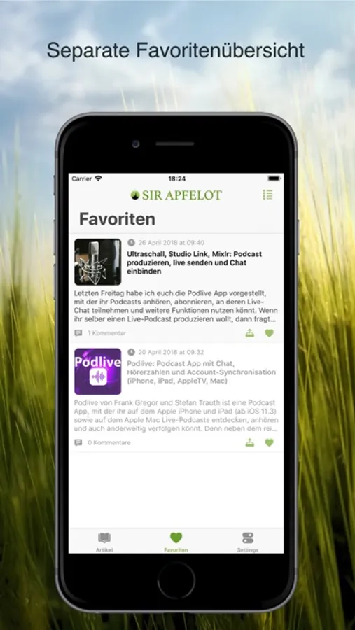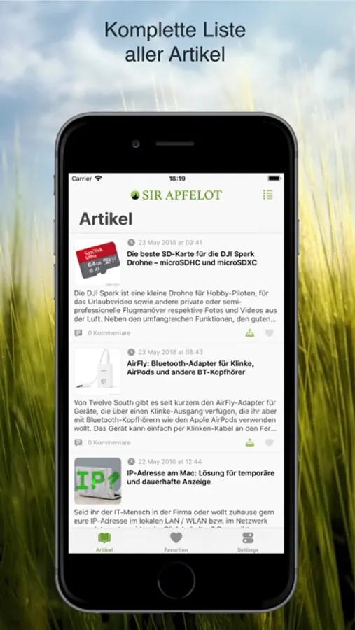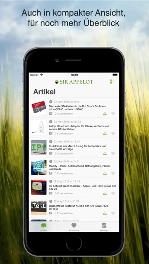 Wenn du keinen Beitrag des Blogs verpassen möchtest, informiert dich die App auf Wunsch per Push-Benachrichtigung, falls etwas Neues bei Sir Apfelot erscheint. Mit dem Fav-Button kannst du deine Lieblingsbeiträge in deiner Favoritenliste speichern und mit dem Share-Sheet sendest du einen beliebigen Artikel per Mail oder per Nachrichten-App an Bekannte.