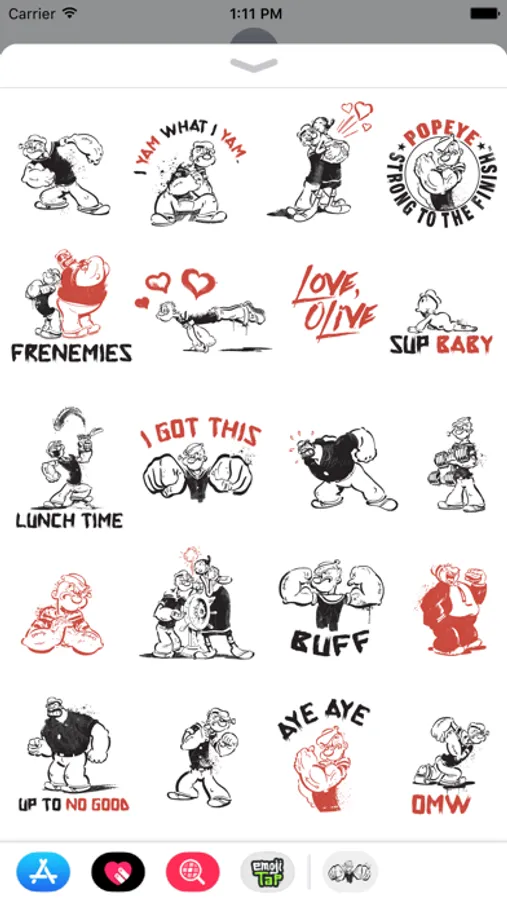 Bump up the grit and share some tough love with Popeye's second official sticker pack. And as always, add a side of spinach.