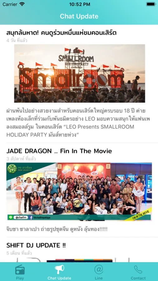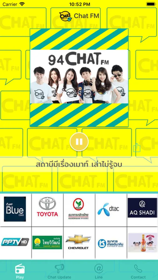 CHAT FM แอพพลิเคชั่นเพื่อการฟังเพลง แอคทีฟเรดิโอที่ มาพร้อมกับดีเจรุ่นใหม่ไฟแรงเฟร่อ เราพร้อมอยู่เป็นเพื่อนคุณ เพื่อเสิร์ฟเพลงฮิต ทั้งเพลงไทยและเพลงสากลแบบต่อเนื่องตลอด 24 ชั่วโมง อย่าลืมติดตามการอัพเดทข่าวสาร กับความสนุกสนานของรูปแบบรายการที่หลากหลาย ที่มาพร้อมของรางวัลที่ขนมาแจกกันมากมาย ร่วมสนุกกันง่ายๆ ได้ทุกวัน จันทร์ - ศุกร์ และสามารถติดตาม CHAT FM ได้ผ่านทางเว็บไซต์ www.chatfm.fm
