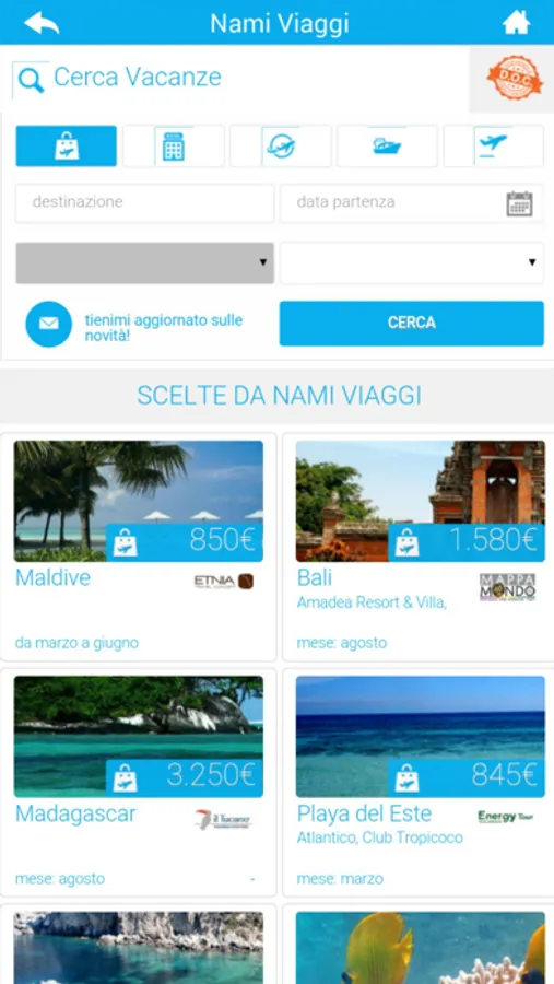 Puoi effettuare una ricerca tra le migliori offerte presenti sul mercato e richiederci informazioni direttamente dalla App.